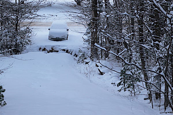 It wasn’t that long ago on this very road—not the same surface, not the same width, not with good ditching—that my neighbors’ ancestors whooshed along in horse- and-sleigh. I won’t talk about how that sleigh got put together, or that horse, but about the roadway itself. Those ancestors made this road themselves. Without taxes. Each household along the supply line did the work required to make their part as good as possible with hands shovels twitch-horses crosscut saws, rollers (to tamp the snow in winter)....